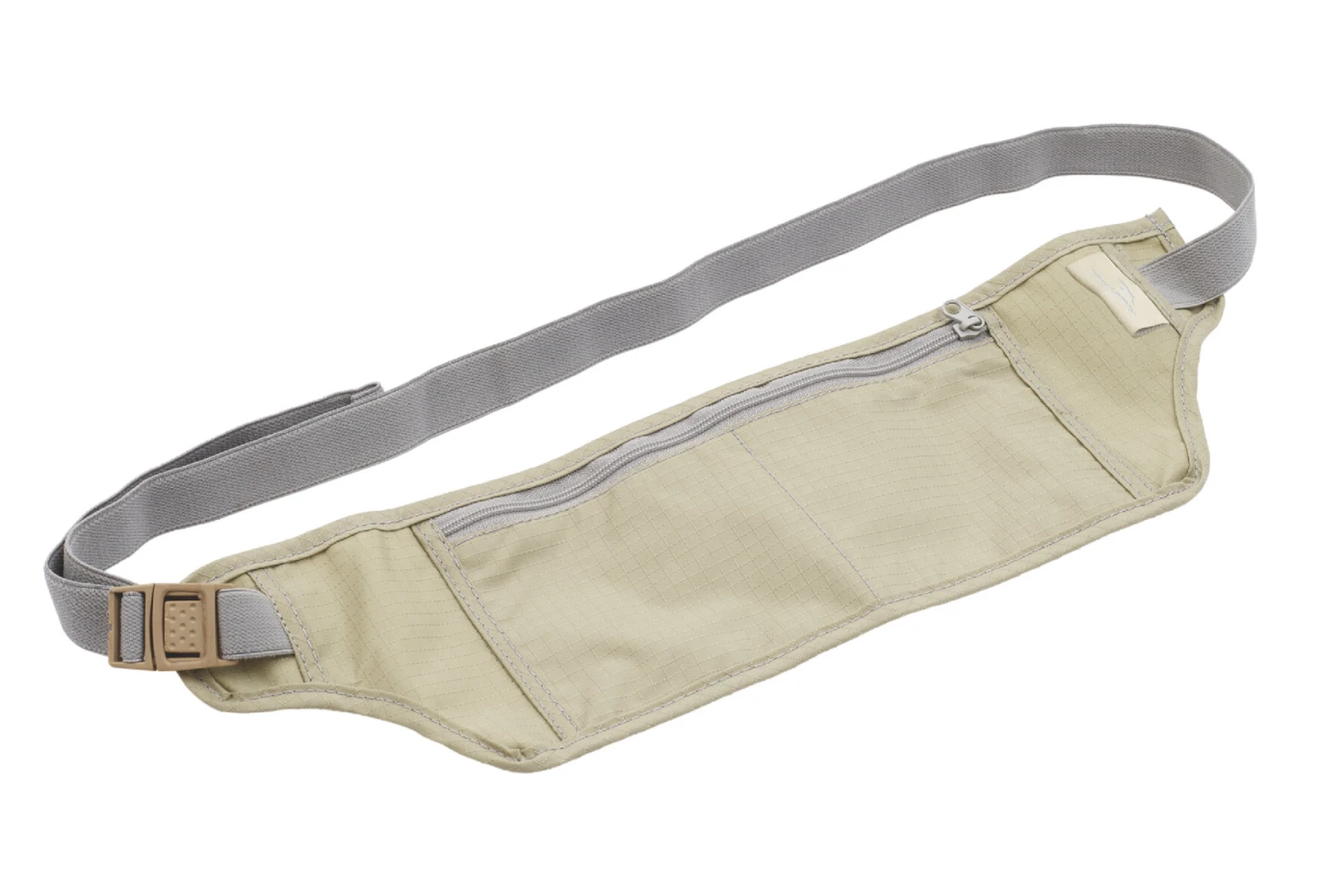 Ceinture porte-monnaie avec poches intérieures divisées et ceinture élastique. En raison de sa couleur neutre, il ne se distingue pas sous les vêtements de couleur claire.